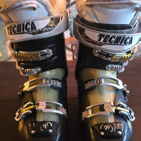 Hei! Jeg selger disse fine slalomstøvlene til 400kr. Jeg er usikker hvilken størrelse de her, mulig de er 39-42. De har noen riper på sidene, men de er ikke synlige. Skoene funker som de skal.