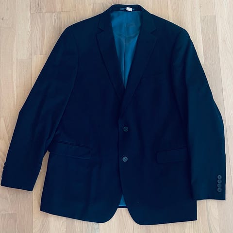 Pen Dressmann dressjakke i størrelse 54, bukse størrelse 34/36 laget av ullmateriale. Jakken har en grå farge og er designet for menn.