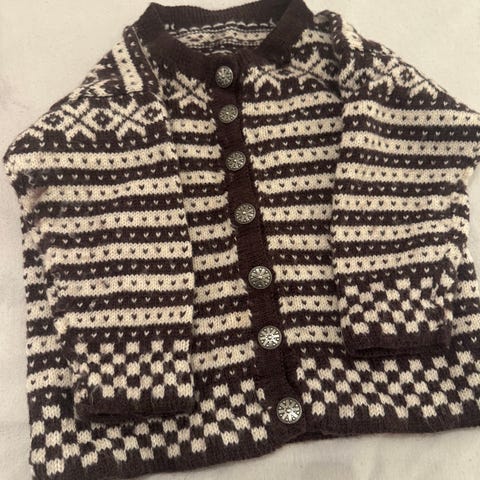Hjemmestrikket/laget bukse og genser til barn i ulik størrelse, unntatt en som er fra Name It. Størrelsen ser man ved målebåndet på venstresiden av klærne. Si hvilket nr bilde (1-6) man ønsker å kjøpe. Kan også sende med fiks ferdig. Helt ubrukt og noen med lappene på. Pris står i bildeteksten per plagg.