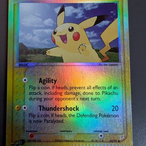 Selger et originalt Pikachu Delta Species holo promo-kort (#035) fra Pokémon TCG, utgitt i 2006.