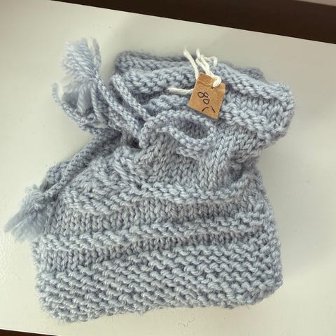 Hjemmestrikket/laget sokker til baby og barn i 100% ull og 100% alpakka. Størrelsen ser man ved målebåndet på venstresiden av klærne. Si hvilket nr bilde (1-2) man ønsker å kjøpe. Kan også sende med fiks ferdig. Helt ubrukt og henger sammen med lappene på. 50kr per par/bilde