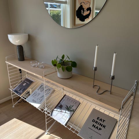 Selger to stk stang til string system. Stengene er 53 cm, og passer til hylleplate som er 58 cm. Svart.