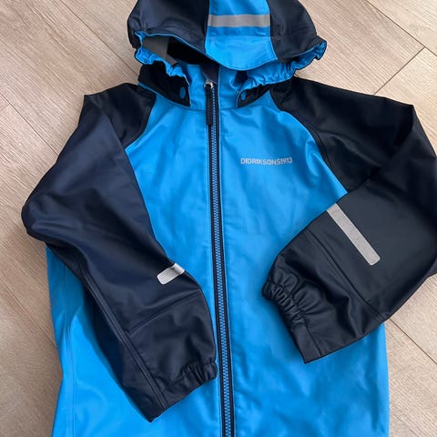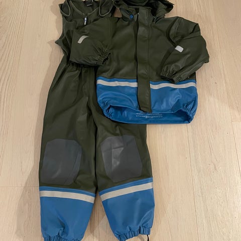 Lite brukt foret regnsett. Framstår hel og pen. Størrelse 120