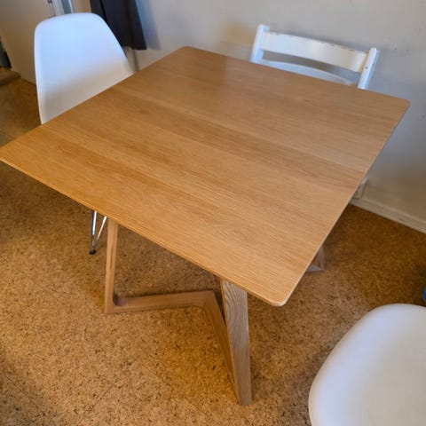 Praktisk og fint bord som er enkelt å forlenge til 120 med ileggsplaten som følger med.