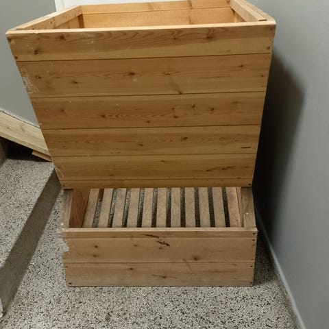 Tre kasse laget av tre. Kan brukes til oppbevaring eller transport av ulike gjenstander.