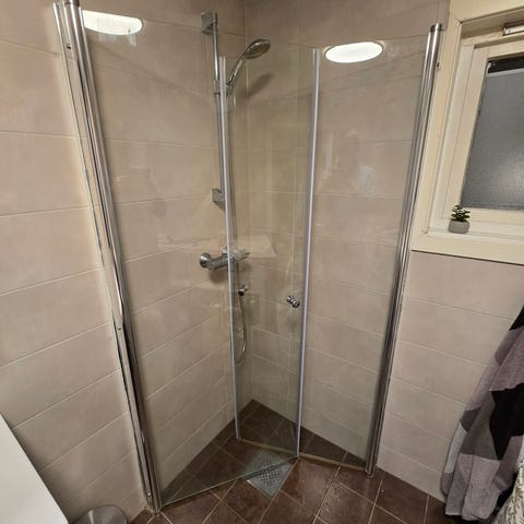 Vikingbad Dusjhjørne 90*90. Dørene har aldrig blitt dusja med , kun brukt med lite badekar for barn på gulvet. Ferdig demontert. Selges 2000 kr eller bud