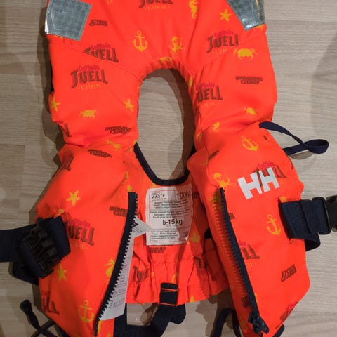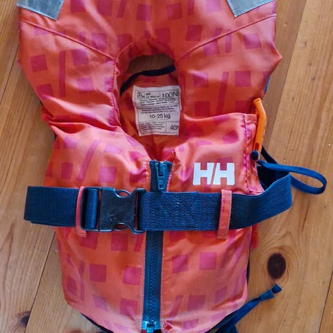 Pent brukt Helly Hansen redningsvest for barn 10-25 kg. Rød farge og reflekser for maksimal sikkerhet