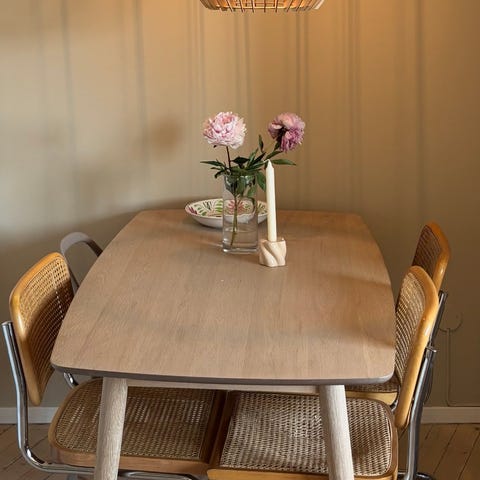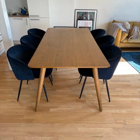 Flott spisebord i eik med to store og ubrukte ileggsplater