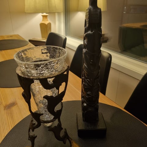 Dekorative små gjenstander selges samlet. Består av ulike pynteobjekter i metall, og glass.