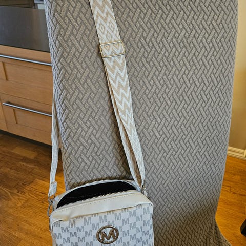 Liten skulderveske. Plass til det nødvendige, som feks mobil, leppestift og lommebok.