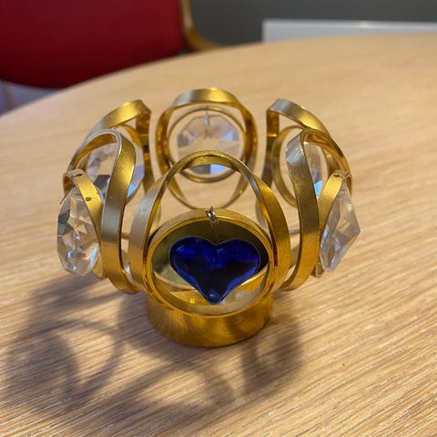 Dette er ekte messing, tungbil stødig. Er 13 cm høy ca.