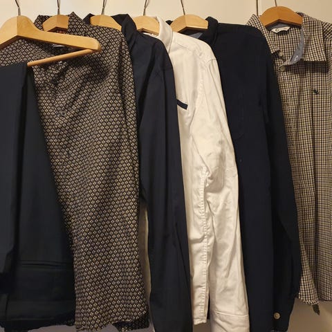 Klespakke gutt 10-12 år. Rød juleskjorte, 2 gensere, T-skjorte, bukse, ullgenser