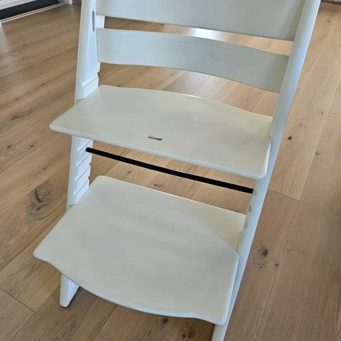 Selger 2 stk Tripp trapp barnestol i blå og lys grå farge.