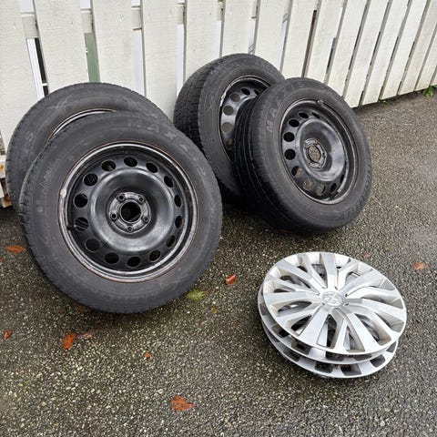Brukt Felger med Vinterdekk 4x108 Peugeot. Citroen. 215/55/16 6,5J, ET 26, 2stk-5mm, 2stk -4mm
