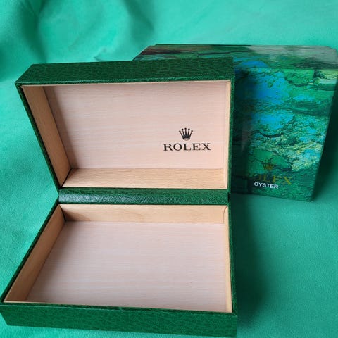 Selger en strøken boks som ble levert ut med en Rolex Datejust.