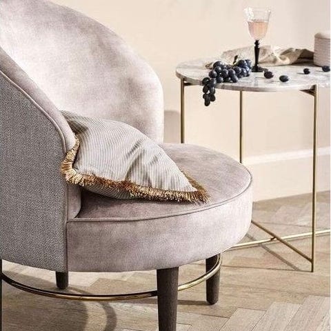Beige lenestol i velour fra Ellos