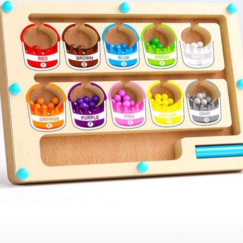 En morsom og lærende leke der barna trekker ut fargerike pinner og ser kulene rulle ned.