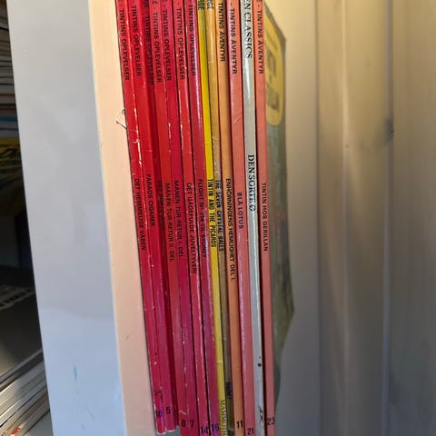 Jeg selger en del Tintin-album i god stand. Alle er innbundet.