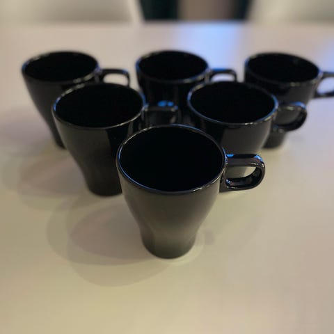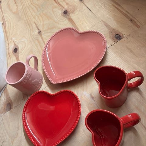 Helt ny nyttårskrus. Aldri brukt. En vakker og komfortabel krus for å løfte nyttårsstemningen.IKEA kaffekopp og tallerken med hvit base og røde prikker. Tekst "LET IT SNOW" på både kopp og tallerken. Keramisk materiale, designet for servering av kaffe eller te.