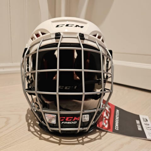 CCM ishockeyhjelm i blå farge, designet for ishockey. Hjelmen har justerbare stropper og polstret innside for beskyttelse og komfort under spill. Uten gitter. 47-55cm. 4-6 år