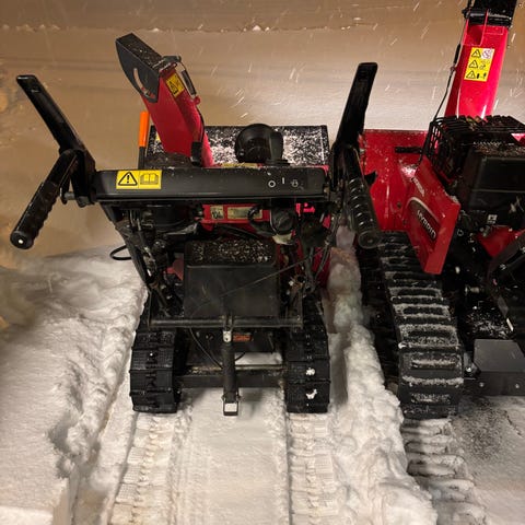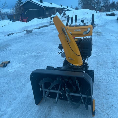 Beltedrevet og hydrostatstyrt. Utkaster som styres enkelt med en joystick. Har arbeidslys.