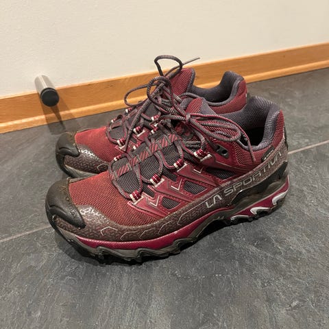Selger et par La Sportiva Ultra Raptor Gore-Tex terrengløpesko/joggesko. Skoene er kun blitt brukt på to korte tørre turer i høst før de ble fravokst, og fremstår dermed som nye uten synlig bruk (Se bilder). Dette er en lett sko, utmerket til turer i skog og mark, så vel som trening og konkurranser i mer krevende terreng; hvor demping og stabilitet er viktig. Skoene kommer med Gore-Tex-membran og undersåle med La Sportiva sin mykeste gummi-blanding, noe som gir skoen utrolig godt grep, både på tørt og vått underlag.