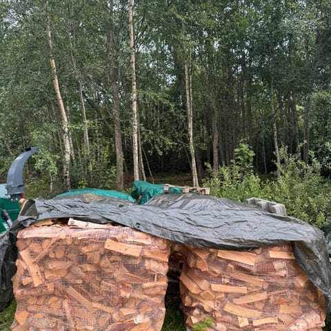 Fyringsklar ved fra storsekk; 1000 liter for kr 1300,- og 1500 liter kr 1700,-