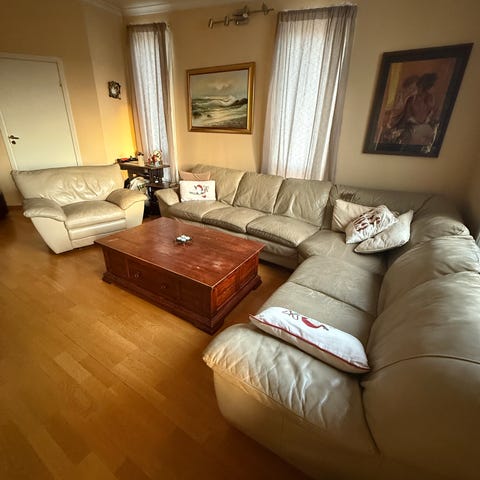 Ganske slitt, og godt brukt men fortsatt fungerende sofaer.