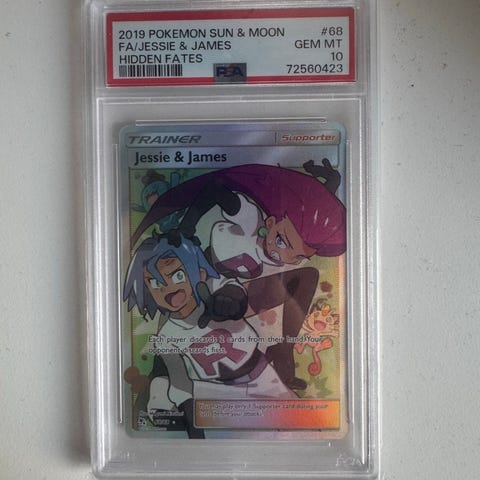Dette er et populært Trainer Full Art-kort med Team Rocket-tema, og et ettertraktet kort blant samlere av Hidden Fates og klassiske karakterer fra Pokémon-universet.