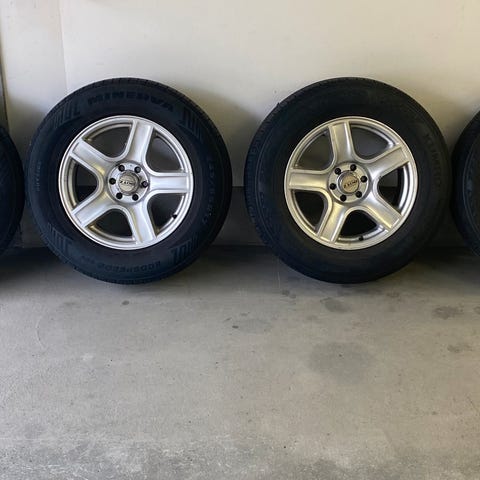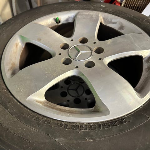 Noen skraper på felgene. Dekkene er brukt, men er fortsatt en del igjen på de.