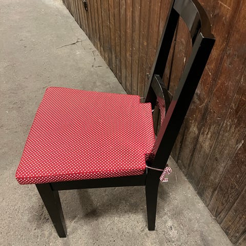 Stol fra Ikea. Kan brukes både til spisebord og skrivepult. (Skinnputen følger ikke med)