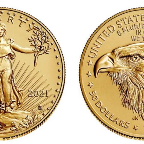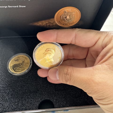 Australia 1 oz gullmynt med motiv av en kenguru på den ene siden og et portrett av Charles II på den andre siden.