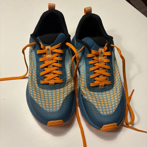 Icebug løpesko/terreng i størrelse 42, med blå og svart farge. Stilige detaljer i gull. Designet for løping, med slitesterkt materiale og godt grep underlag med pigger. Nypris 1398
