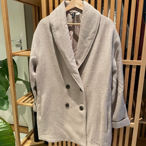 Arket brushed wool kåpe, i farge mole, str 40. Favoritten til mange som elsker minimalistisk scandi stil, utsolgt, men fortsatt ettertraktet. Brukt, normal slitasje, kan sende flere bilder om ønskelig. Armene ble brettet inn fordi de var for lange for meg. Relaxed fit. Ingen hull eller flekker.