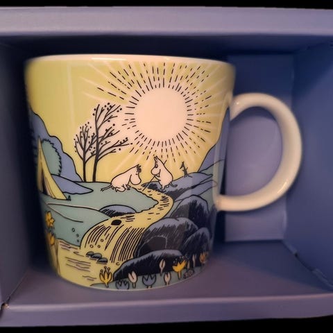 Kruset har fått navnet Vår, og er det tredje i Mummidagens kruskolleksjon med illustrasjon av en bestemt årstid i Mummidalen.