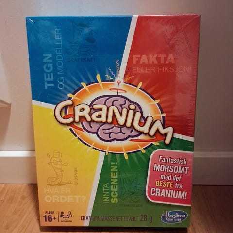 Selger Cranium Dark, en morsommere og sprøere versjon av klassikeren. Perfekt til fest og vors! Her får du utfordringer innen tegning, miming og ordlek som garanterer latter.