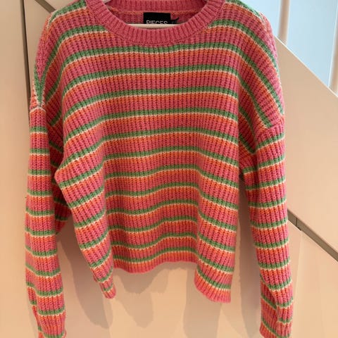 Ny Pieces cardigan i størrelse XL, laget av ull. Plagget har svart farge og er designet for kvinner. Det er ull, polyester òg elastan i den. Selges kr 200,-. Ny pris 499,95,-.