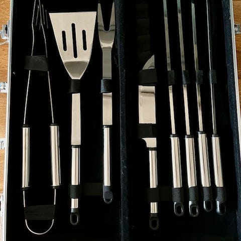 bbq grillsett grillutstyr sommer grilltilbehør stekespade grillklype grillgaffel hage grilling ute hytte camping sommergave gaveidé kjøkkenutstyr grill verktøy