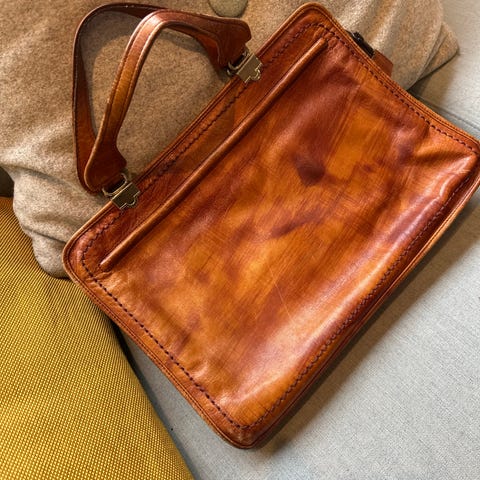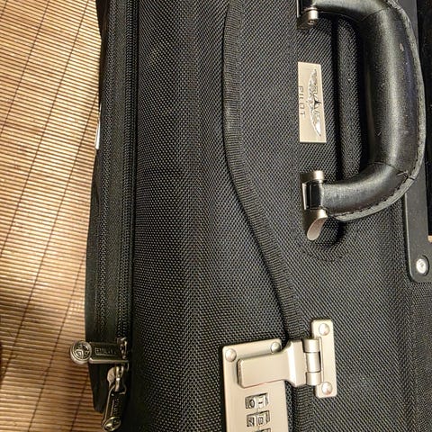 Selger en klassisk dokumentkoffert med kombinasjonslås. Flere praktiske rom for dokumenter og penner. Perfekt til jobb, kontor eller som vintage-tilbehør.