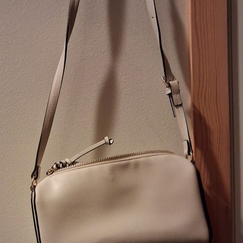 Lys beige liten veske..litt bruksmerker nedi ,men ikke mye..den er vasket