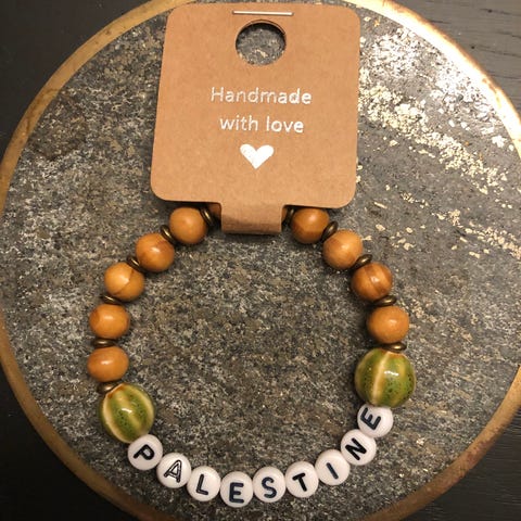 Armbånd med perler i Palestinas farger