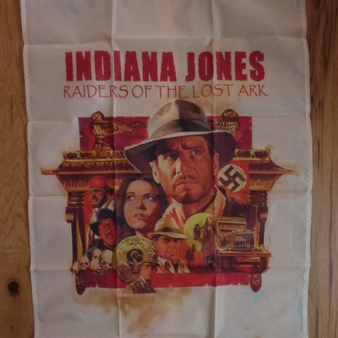 Dødsfett Indiana Jones, Raiders of the lost Ark Filmbanner/Flagg selges. Ca. 90x60 cm. Laget i polyester. Bør strykes da det har ligget nedpakket i emballasjen noen år. Kjøper tar frakt.