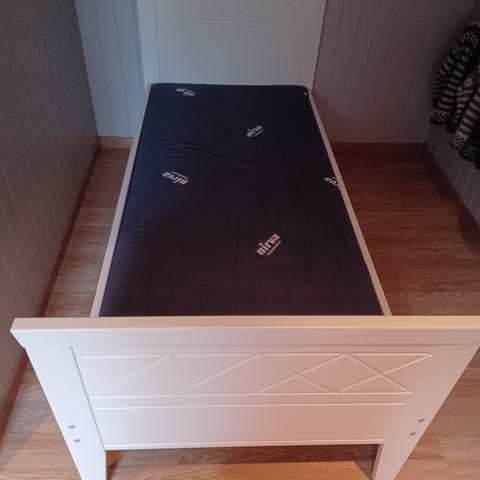 Seng selges fordi den skal byttes ut. Sengen har fire skuffer. Brukt i tre år.