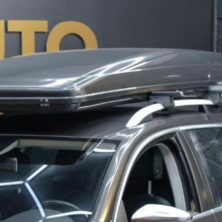 Lastestativ og Thule Alpine takboks i lys grå farge selges samlet. Lastestativet passer til Ford Mondeo