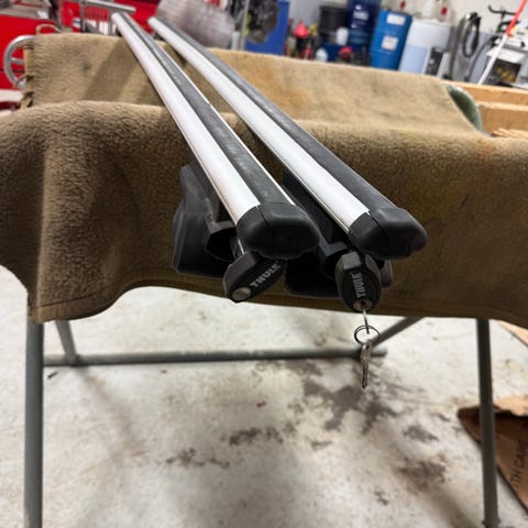 Thule Alpine takboks og låsbart takstativ selges samlet.