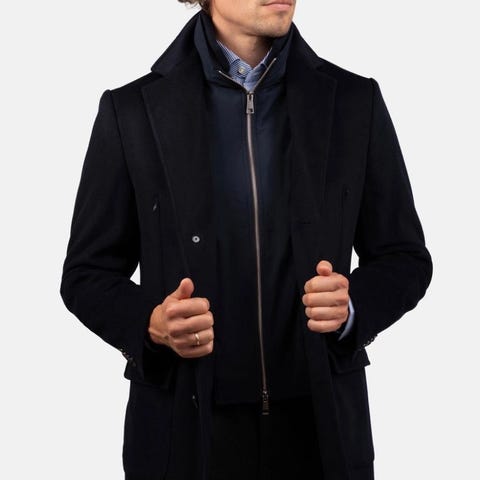 Så og si ubrukt dobbeltspent frakk fra Cavour. 100% ull, mørkeblå Martingala/polo coat med lekre detaljer. Størrelse 54/XL.