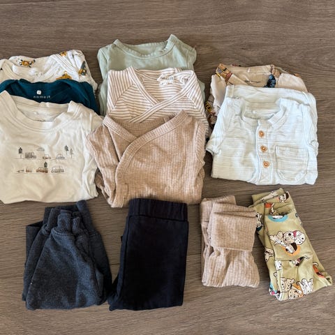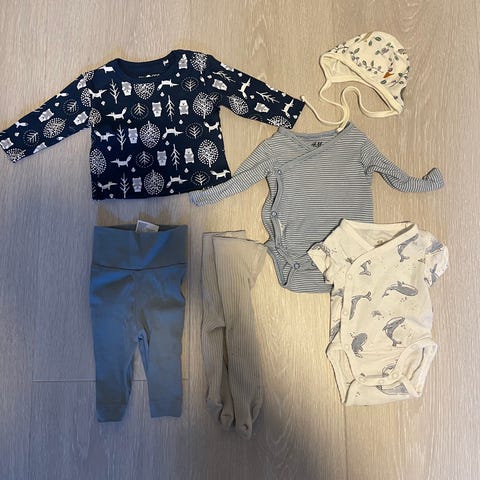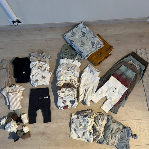 Klespakke nøytral str 50. Inneholder 5 matchende sett og 3 hvite bodyer