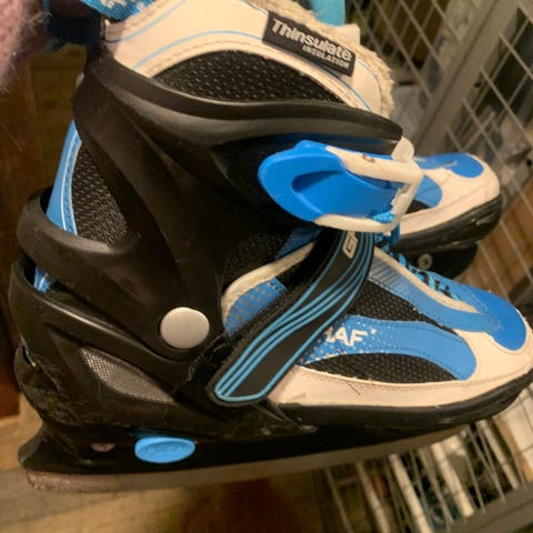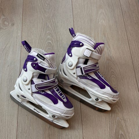 Graf Andre skøyter i størrelse 33 for barn. Skøytene er svarte og designet for generell bruk innen skøytesport. De har justerbare stropper for god passform.