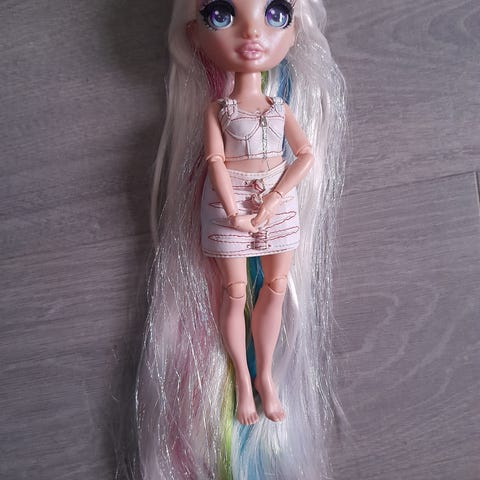 Kjempestilig dukke med regnbuehår og med alt av tilbehør. Kun stått på hylla etter den ble tatt ut av esken og har ikke vasket håret engang. Selges for 200kr. Kan sendes eller hentes i Fredrikstad 🌸