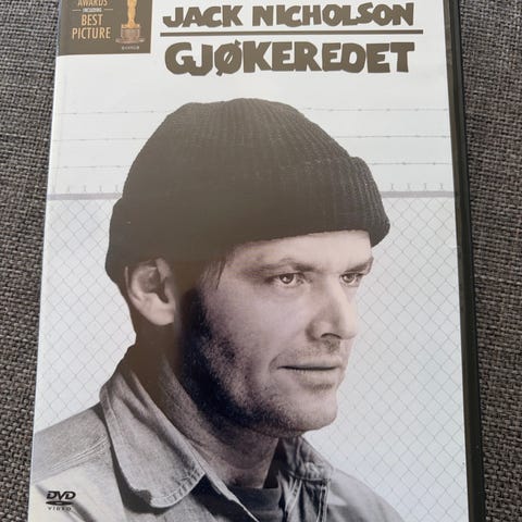 Uåpnet i plast Jack Nicholson Gjøkeren DVD med svart-hvitt cover. Inneholder filmen 'Gjøkeren' med Jack Nicholson i hovedrollen. DVD-format.